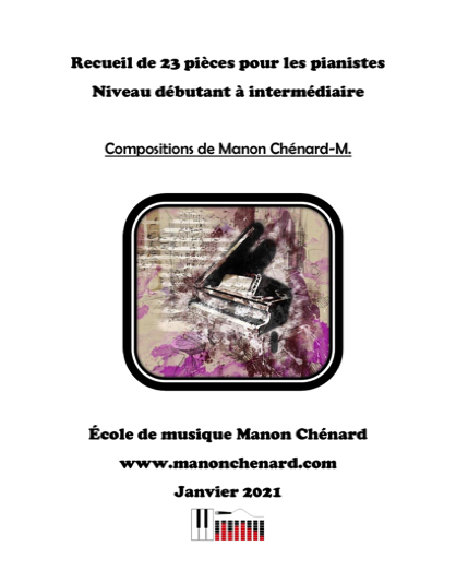 Pour vous procurer un exemplaire à 20$, contactez-moi au manu2@globetrotter.net ou en messagerie privée sur la page facebook de l'École de musique Manon Chénard. Pour 5$ supplémentaire, il est aussi possible pour moi de vous l'envoyer par la poste.